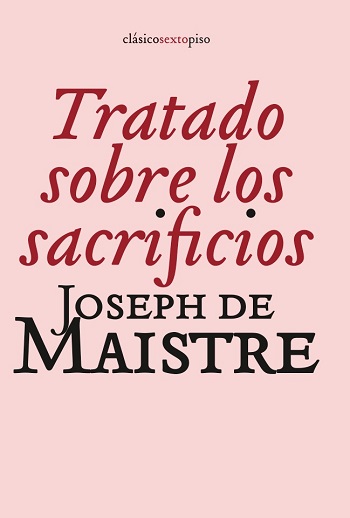 El sacrificio, pilar del orden social y, en última instancia, del mundo, es uno de los temas centrales del pensamiento de De Maistre. La vida emerge de la sangre que circula por los cuerpos. El hombre es al mismo tiempo carne y espíritu, cuerpo y alma. La carne, principio sensible del hombre, es la causa de su culpabilidad, y ésta no puede ser lavada más que con la sangre. La salvación por la sangre: tal es el principio que, según De Maistre, subyace a todo sacrificio. De ahí la universalidad de una práctica que, carente hoy de la sacralidad y el esplendor que la revestían en la antigüedad, continúa vigente en las sociedades modernas.