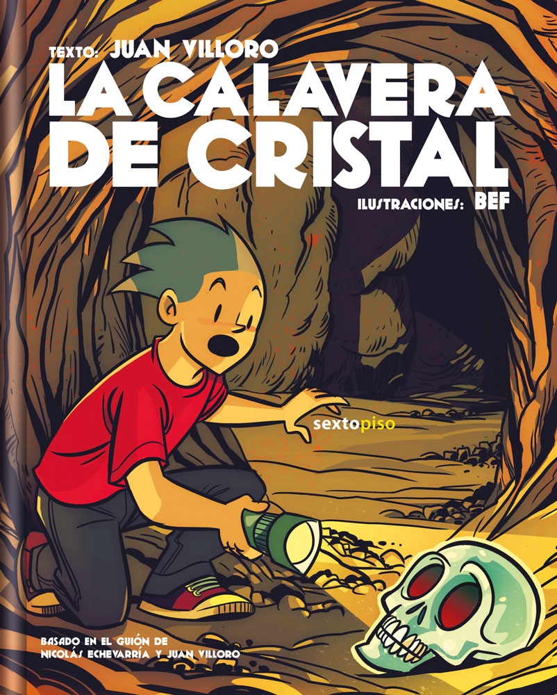 La calavera de cristal es la primera novela gráfica de Juan Villoro. Esta historia, ilustrada con precisión y talento por Bef, apuntala el género del cómic en México y se presenta como una lectura entretenida y entrañable para todas las edades. En el homenaje por el décimo aniversario de la muerte del capitán Rodríguez Plata, su hijo Gus se da cuenta de que la vida de su padre es un misterio para él. De la mano de su amigo Máquina decide aventurarse a resolver los enigmas que rodean el deceso de su padre. En el trayecto se hará de cómplices como su tío Felipe, un científico loco que se refiere a Gus como «pequeño primate», y su fiel asistente, el gordo Bernabé, que es bueno como el pan; contará con la ayuda de Jerónimo «el Reptil» Rodero, quien expía sus pecados viviendo en el desierto donde se alimenta de culebras y armadillos. Juntos deberán combatir a Venus de Venegas, un rico empresario coleccionista de dulces exóticos y de piezas arqueológicas y a su manga de secuaces: la hermosa Circe, que sólo encuentra paz destruyendo obras de arte que rivalizan con su belleza, el conserje del Museo de Antropología Xipe Totec, cuyo apodo deriva del parecido de su horrible rostro con el dios maya de la renovación (el dios despellejado), así como un sacerdote corrupto llamado Mano Santa, y Roberto Bob Boby, campeón regional de tiro y veloz corredor de autos. En medio de esta épica búsqueda a través del pasado, héroes y villanos pasarán por míticos parajes arqueológicos como Paquimé o Yaxchilán, mientras intentan descifrar las pistas contenidas en cajas negras de aviones, códices mayas y antiguas ciudades prehispánicas en pos de «el brillo de los hombres»: la calavera de cristal.