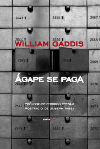 «Jack Gibbs, figura de reparto en Jota Erre y narrador de Ágape se paga, se dirige a nosotros desde su lecho de muerte y no es un narrador feliz. Su cuerpo lo ha traicionado y el mundo es una mierda y está dominado por tecnócratas. Y su novela –en la que lleva trabajando años– se deshace en pedazos sueltos e inconexos. Queda poco tiempo para volver a afirmar lo mismo de siempre: la tecnología jamás podrá suplantar la creatividad de los hombres. Así que adiós a la puntuación convencional y hola al libre fluir de conciencia y a la libre asociación de ideas que le permiten al narrador –al recitador, en un casi delirio de agonizante– invocar tanto a Glenn Gould como a John Kennedy Toole, Miguel Ángel y Tolstói, para destilar una última pócima mágica, un tónico para intentar conseguir el “ágape”: la amorosa sensación de ser uno con el mundo celebrada por los primeros y nada burocráticos escritores cristianos. No lo consigue, claro. Pero en el fracaso de Gibbs está el triunfo de Gaddis alertando desde el Más Allá sobre la música, invisible pero cierta, de la entropía. Y eso es lo que en realidad es este pequeño inmenso libro: un tractatus postrero, una última voluntad y un deseo final de que, al menos, intentemos comprender lo incomprensible. Y después veremos qué hacer al respecto».
